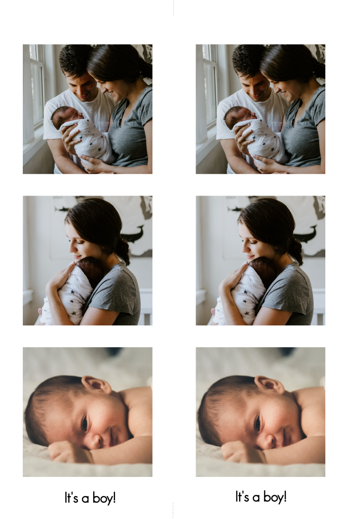 Maak zelf je fotostrip! Zet twee keer drie foto's van je baby op dit kaartje en knip na het ontvangen de fotostrip los op het hulplijntje.