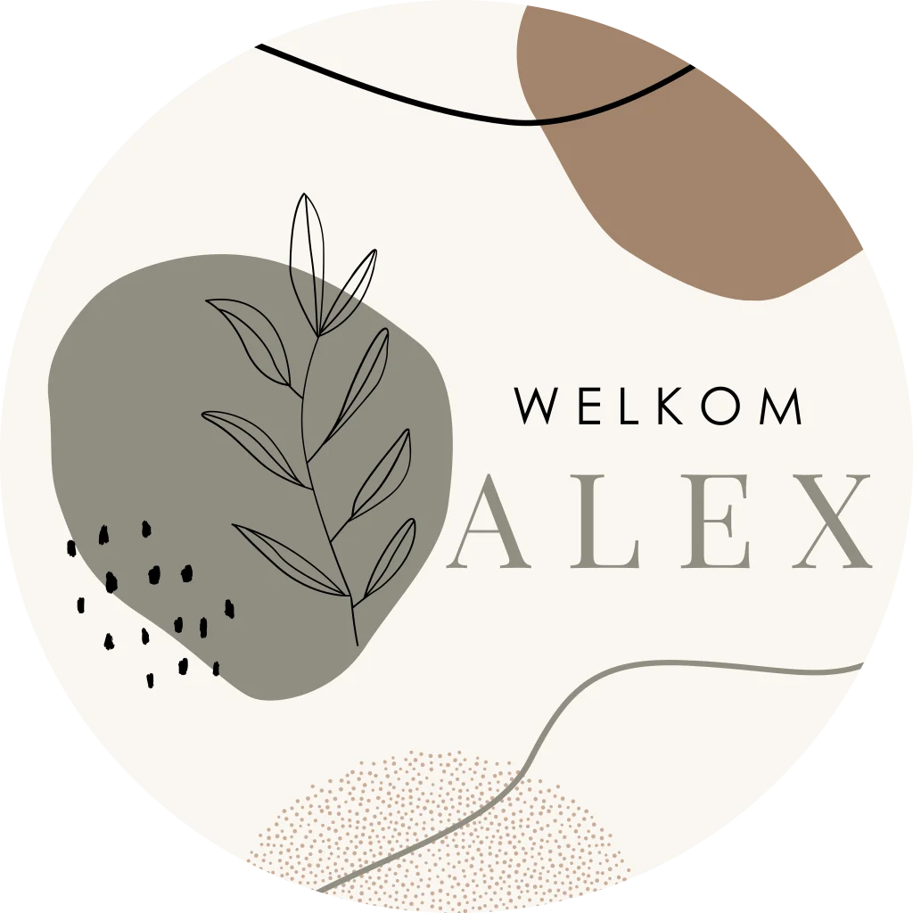 Hippe raamsticker in naturel kleuren met takjes en organische vormen en moderne typografie. Personaliseer de sticker naar eigen wens in de online editor.