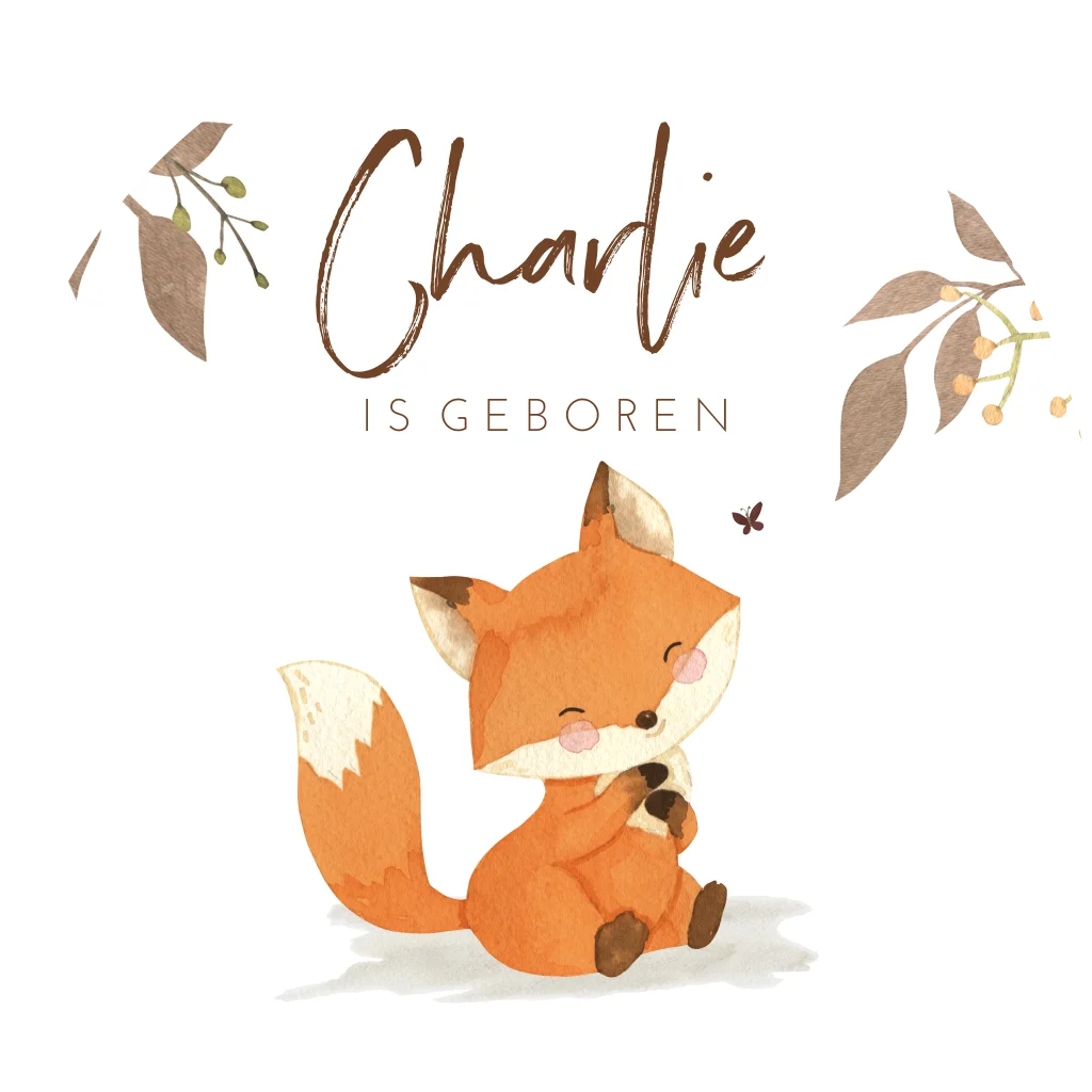 Grappige raamsticker met een lief vosje en takjes in naturel kleuren. Personaliseer de sticker naar eigen wens in de online editor.