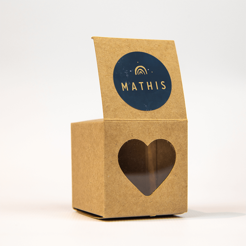 Het geboortekaartje is klaar om te versturen, met deze bijpassende sluitzegel zet je net even de puntjes op de i! Op de donkerblauwe velvet achtergrond een goudkleurige regenboog met sterretjes en de naam van jullie kleine, zo is meteen duidelijk wie de nieuwe wereldburger is!