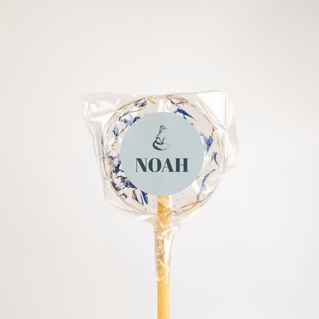 Op deze grijsblauwe sticker valt de naam meteen in het oog: een stoere donkerblauwe typografie. Erboven een getekend vosje, echt lief!| Totaalprijs: 0 |