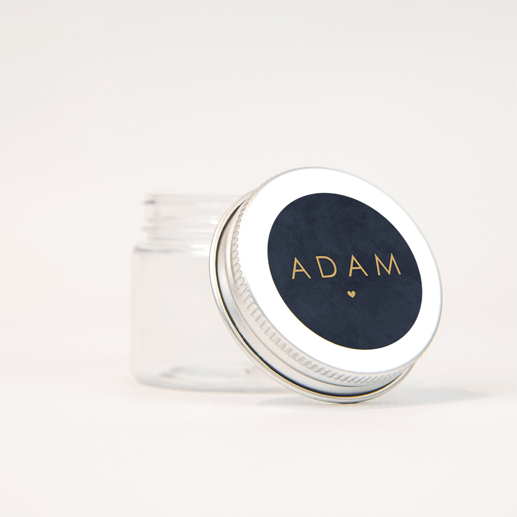 Een luxe naamsticker met een donkerblauwe velvetlook achtergrond. Bewerk de sticker volledig naar eigen wens in de editor.| Totaalprijs: 0 |