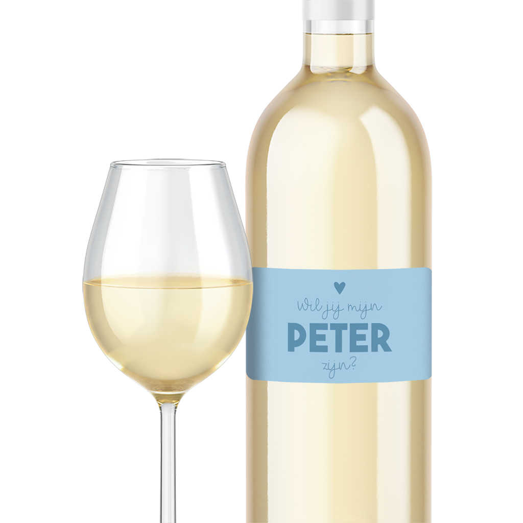 Fles etiket in het blauw voor peter