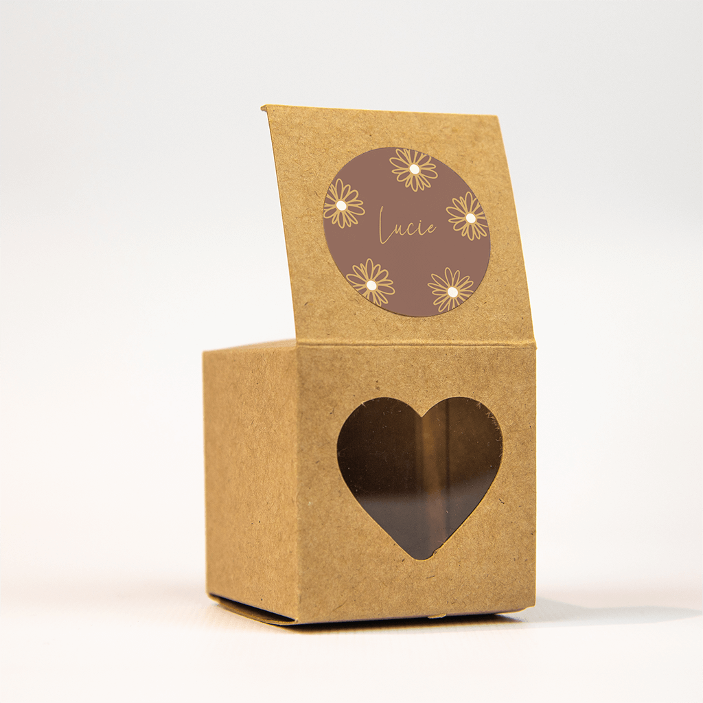 Mooie bijpassende sticker voor de doopsuikers of om de envelopjes mee te sluiten. Op de oudroze ondergrond zijn gele bloemetjes met een wit hartje getekend. De afmeting is Ø 35 mm, per vel 25 stuks.