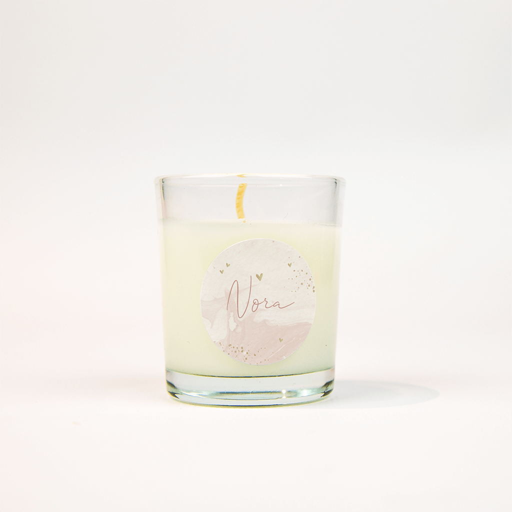 Deze lieve roze sticker in dezelfde stijl als het geboortekaartje maakt het helemaal af, echt trendy! De naam van jullie dochter in sierlijke letters op de lichtroze marmerlook en de hartjes op de sticker zijn de finishing touch op de enveloppe.