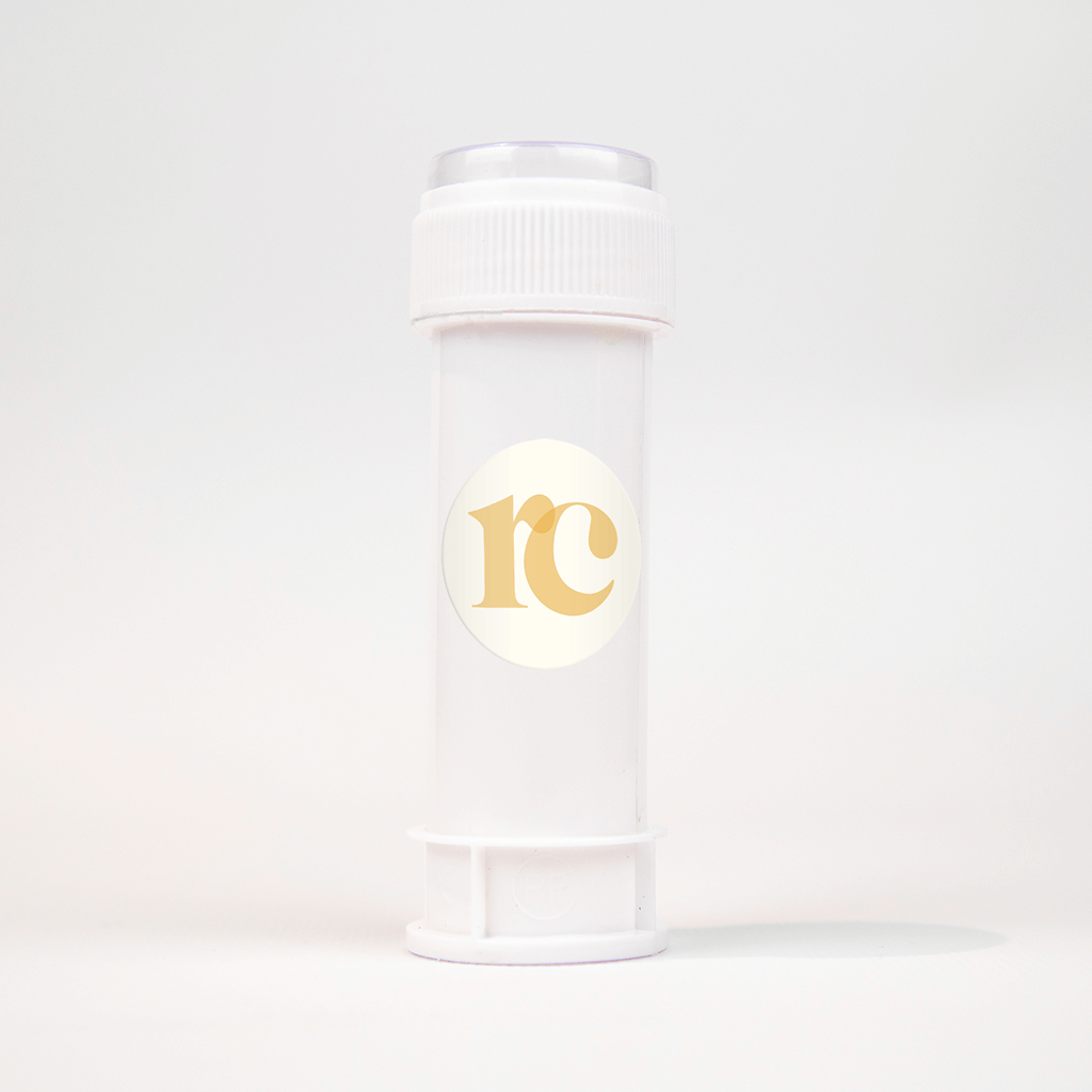 Vrolijke sticker met de initialen van je kleintje in oranje letters die speels tegen elkaar staan.