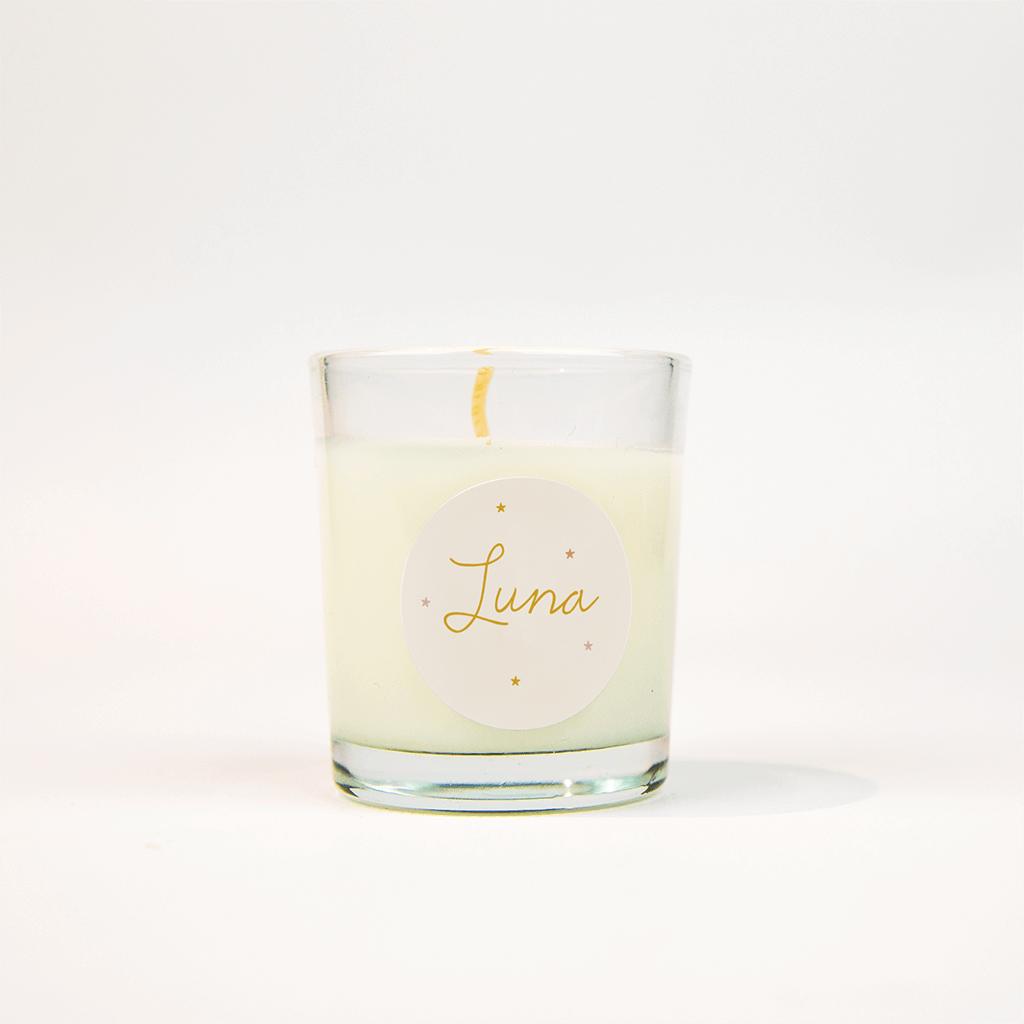 Een schattige sticker om de envelopjes van de geboortekaartjes gemakkelijk mee te sluiten. De naam van jullie dochter staat in dezelfde stijl als op het geboortekaartje op een lichtroze achtergrond met sterretjes.