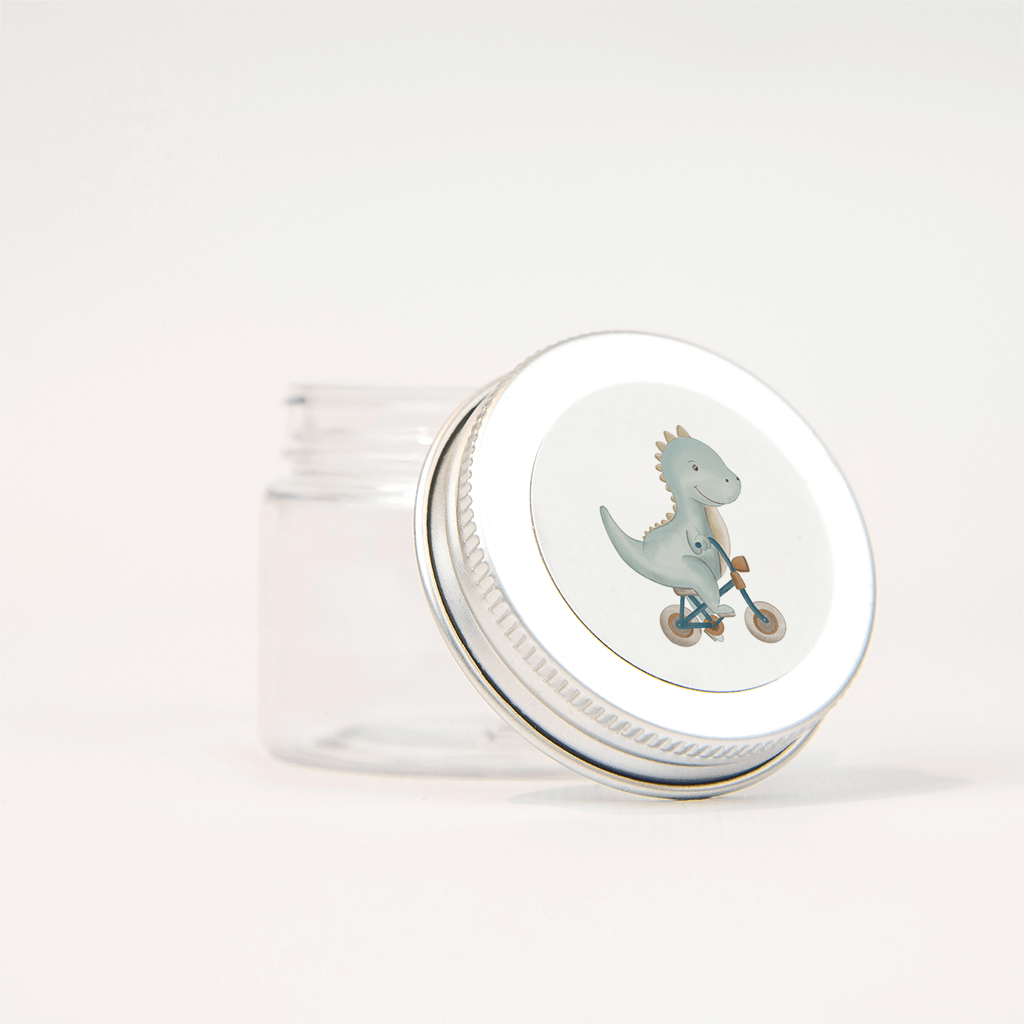 Een lieve sticker van een blauwe dino op een fietsje. Deze schattige dino staat ook op het bijpassende geboortekaartje.