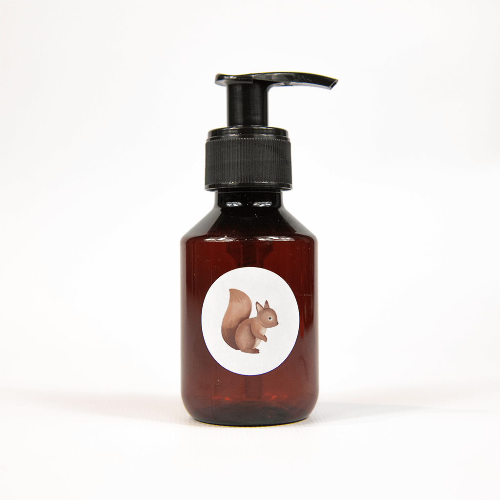 Deze sticker past perfect bij het geboortekaartje met bosdieren. Op een witte achtergrond zit een lief roodbruin eekhoorntje.