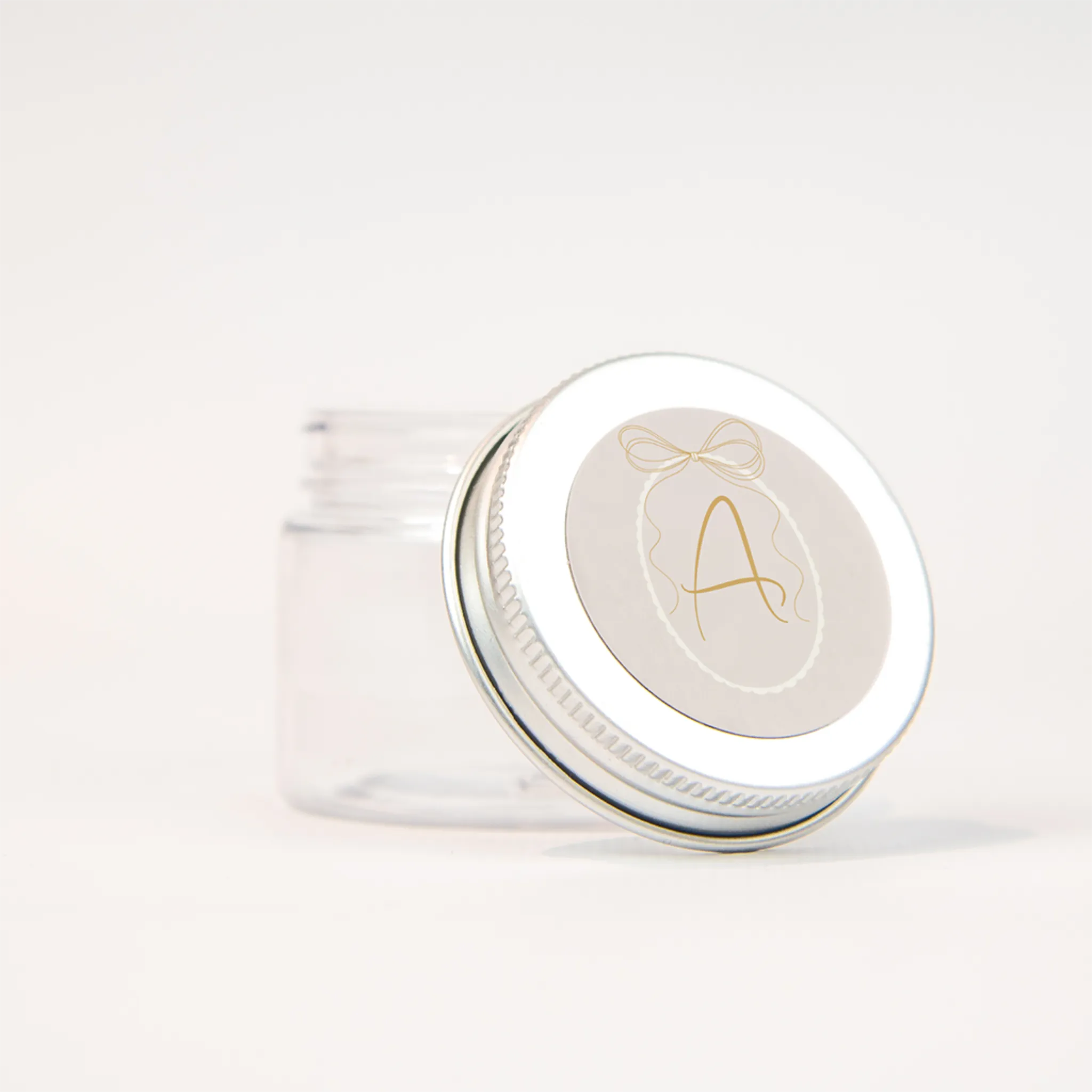 Zacht beige naamsticker met de letter van jullie dochter in een ovaal en een strik.| Totaalprijs: 0 |