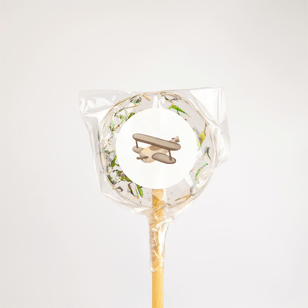 Witte sticker met vliegtuig in beigetinten. Deze sticker heeft een mooie bijpassende kaart.