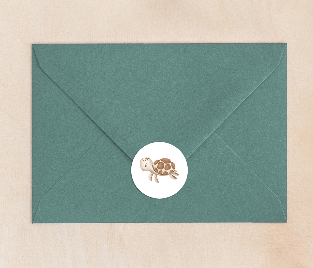 Leuke sticker met zeeschildpadje. Combineer het met een bijpassend kaartje met zeedieren, leuk!