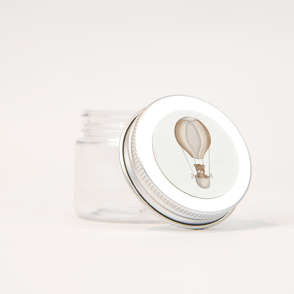 Op deze sticker staat een leuke afbeelding van een luchtballon in beige tinten. In de luchtballon zit een lief beertje. Heb je het geboortekaartje met dezelfde afbeelding al gezien?