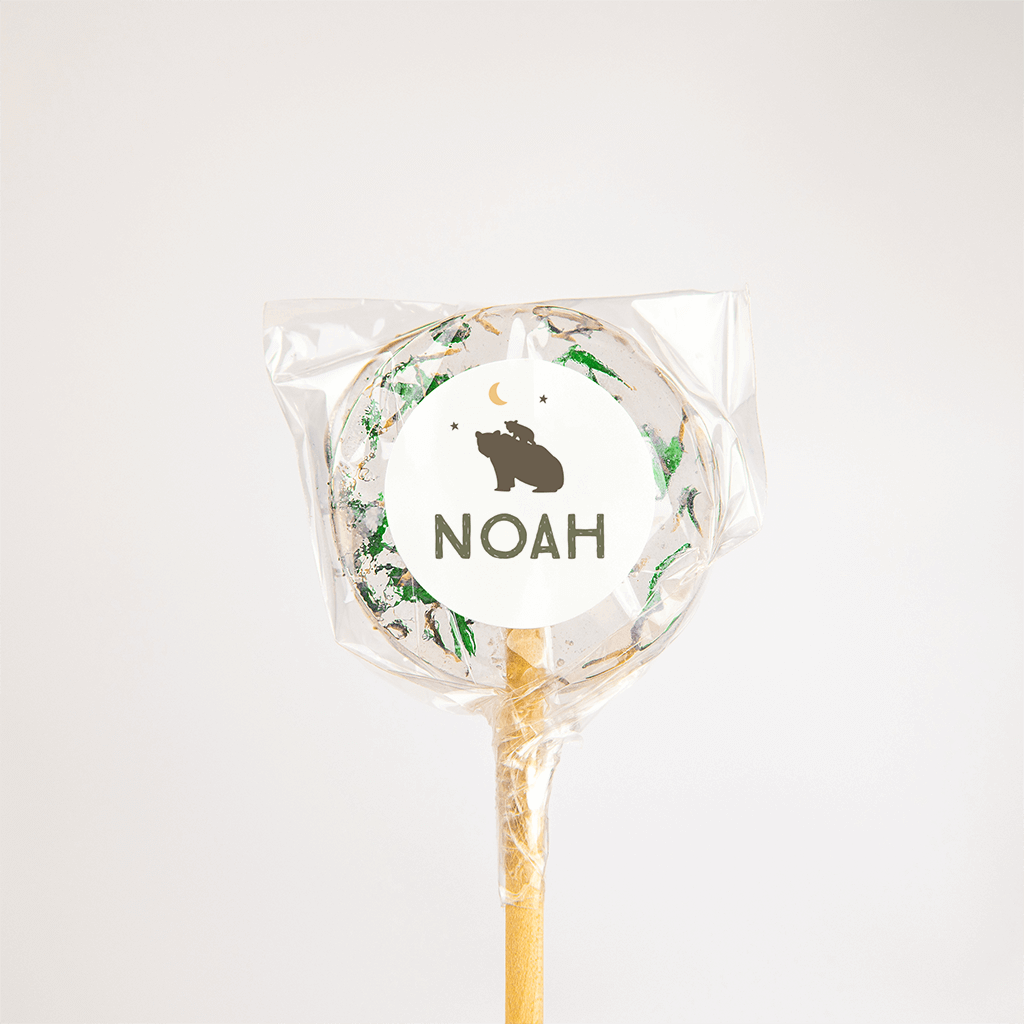 Wat tof, zo'n sticker in de stijl van jullie geboortekaartje! Het kleine beertje zit veilig op de rug bij vader of moeder beer met een maan en sterretjes erboven. De naam van de kleine staat in hip lettertype eronder. Met deze sticker maak je ook de envelopjes persoonlijk en laat je meteen de ontvangers weten dat jullie kleine is geboren!