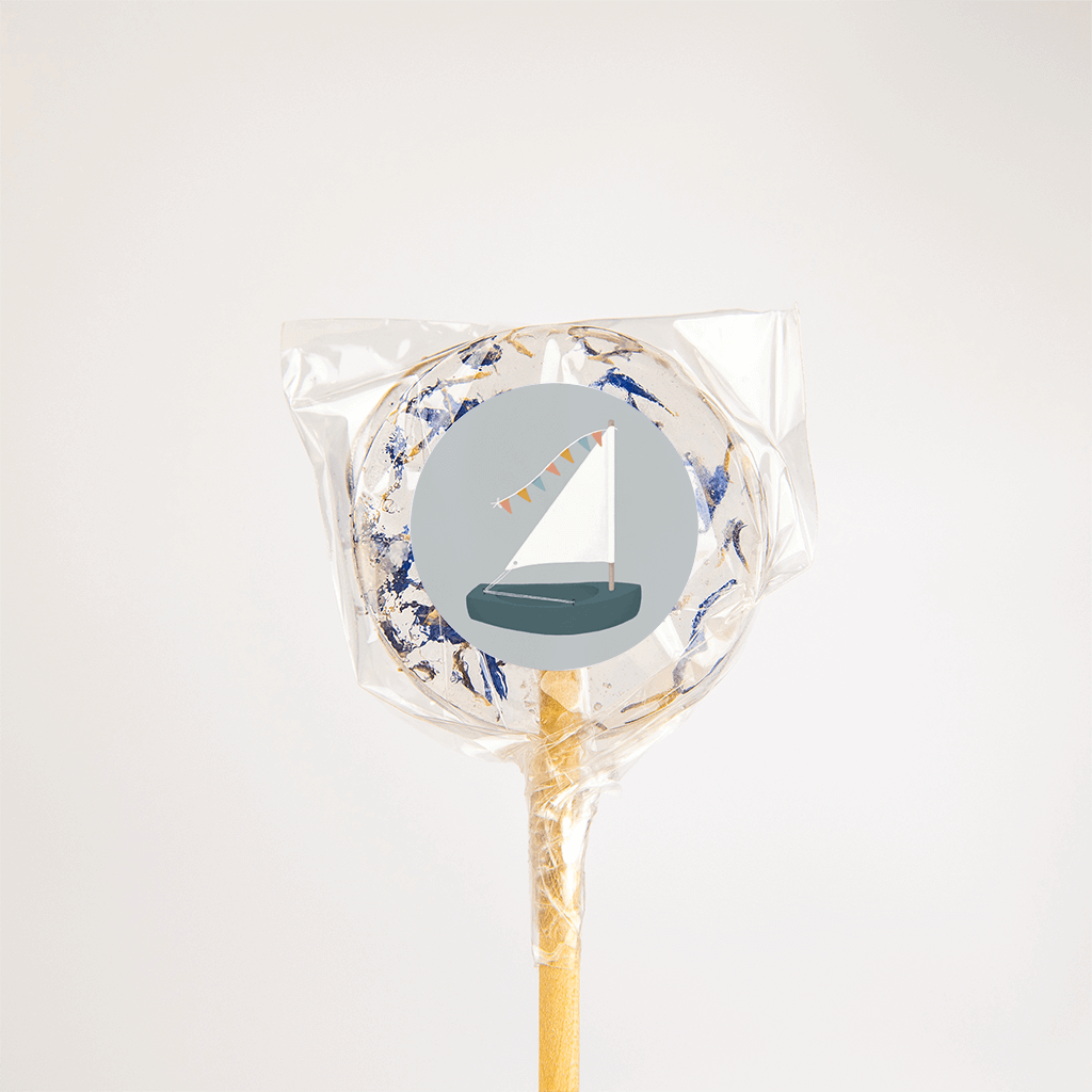 Een stoere sticker bij het geboortekaartje van jullie kleine! Op een grijze achtergrond staat een zeilbootje met een vrolijke vlaggetjesslinger in verschillende kleuren, wat een feest!| Totaalprijs: 0 |
