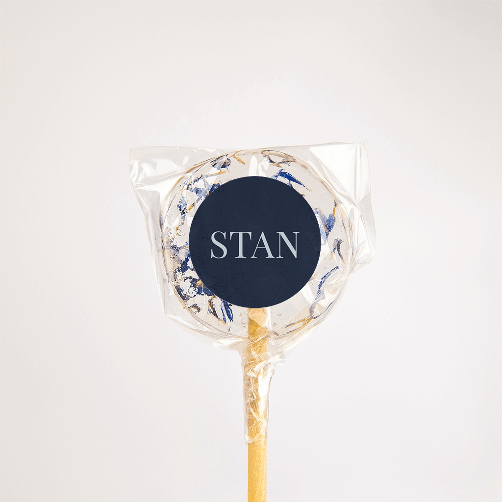 Met deze stoere sticker maak je een mooi geheel van de geboorteaankondiging van jullie zoontje! Op een donkerblauwe achtergrond staat de naam in moderne lichtblauwe typografie centraal, dat trekt meteen de aandacht!