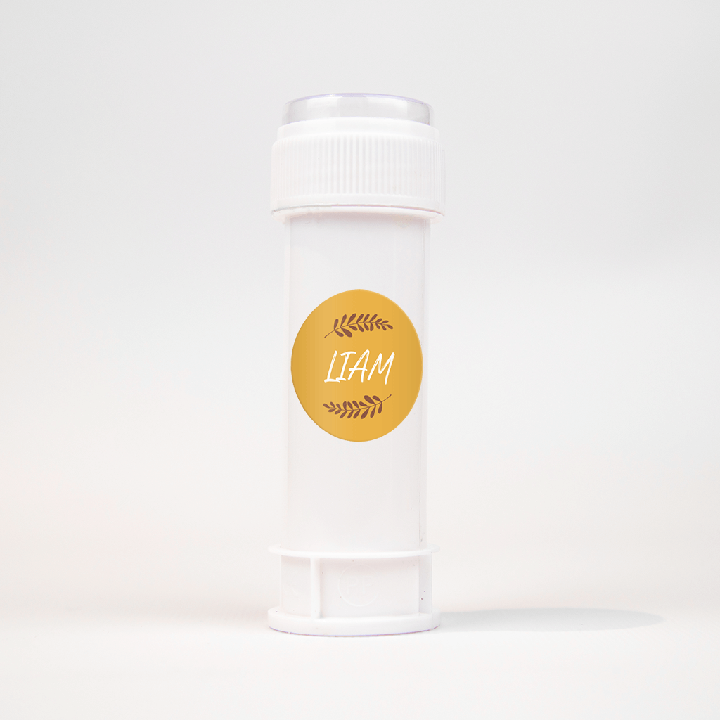 Schattige goudgele sticker met takjes die past bij het originele geboortekaartje. Leuk om je doopsuikers of envelopjes mee te versieren.