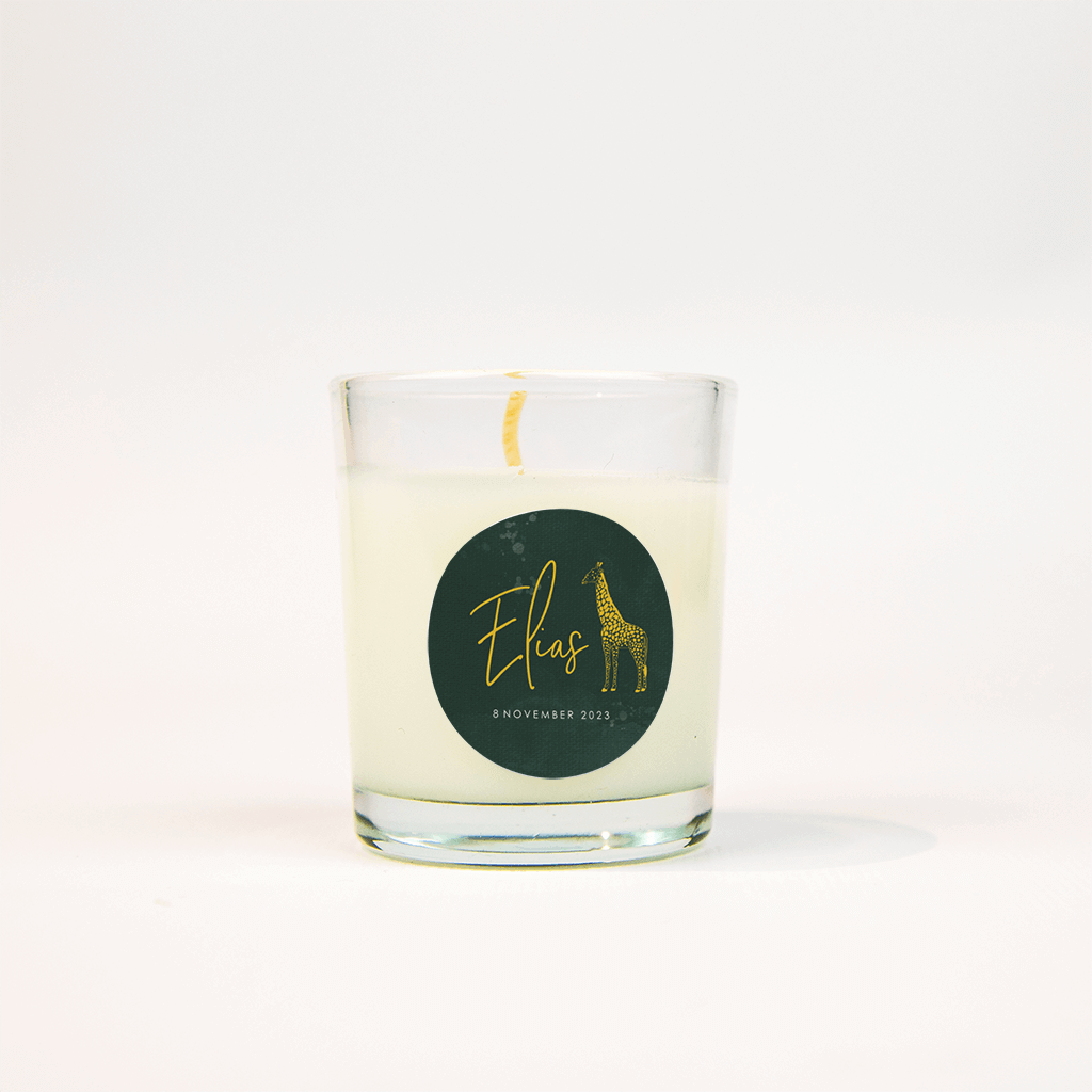Een mooie bijpassende sticker bij het donkergroene geboortekaartje met de giraffe. De naam van de kleine staat in trendy gele letters centraal, ernaast de mooie getekende giraffe. Met deze sticker kun je eenvoudig de enveloppe sluiten en heb je ook nog eens een mooie eyecatcher op de enveloppe!