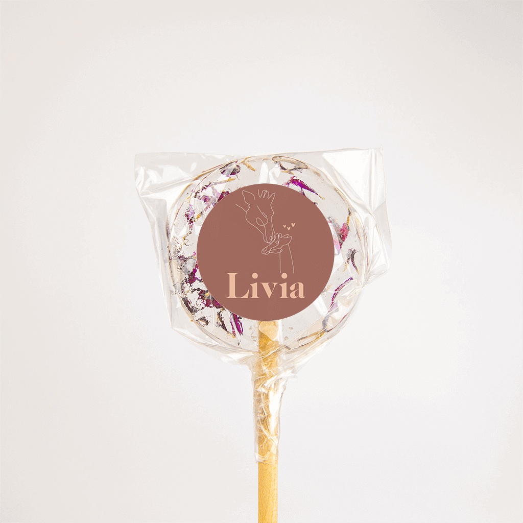Lieve sticker waarop je een giraffe ziet die een kusje geeft op de kop van haar baby-giraffe.Bekijk ook het bijpassende geboortekaartje.
