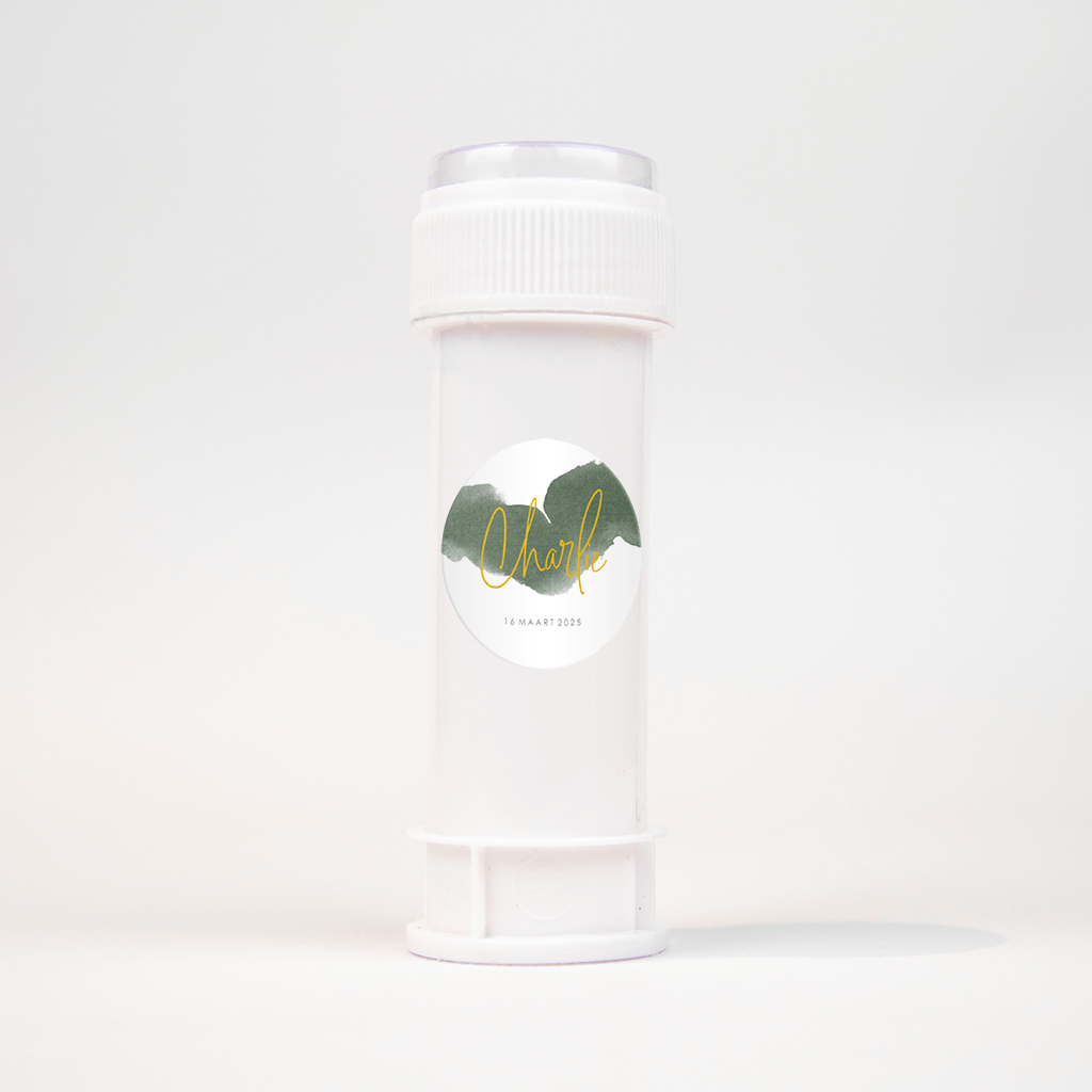 Deze sticker past bij het geboortekaartje met de groene watercolour strepen. De naam in goudkleur staat in trendy letters centraal, eronder de geboortedatum. Plak de envelopjes op eenvoudige manier dicht met deze stickers, zo krijg je een mooi geheel!