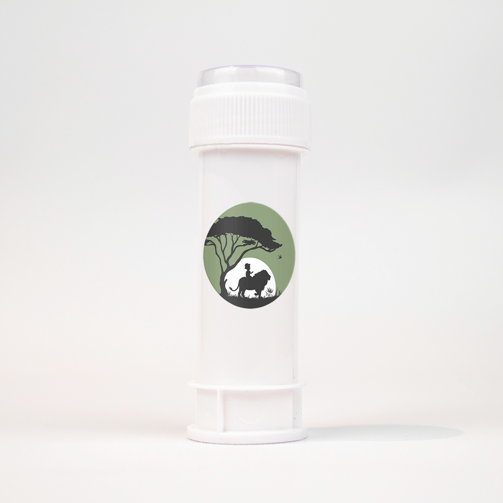 Stoer stickertje in junglethema met een silhouetje van een jongen op de rug van een leeuw.| Totaalprijs: 0 |