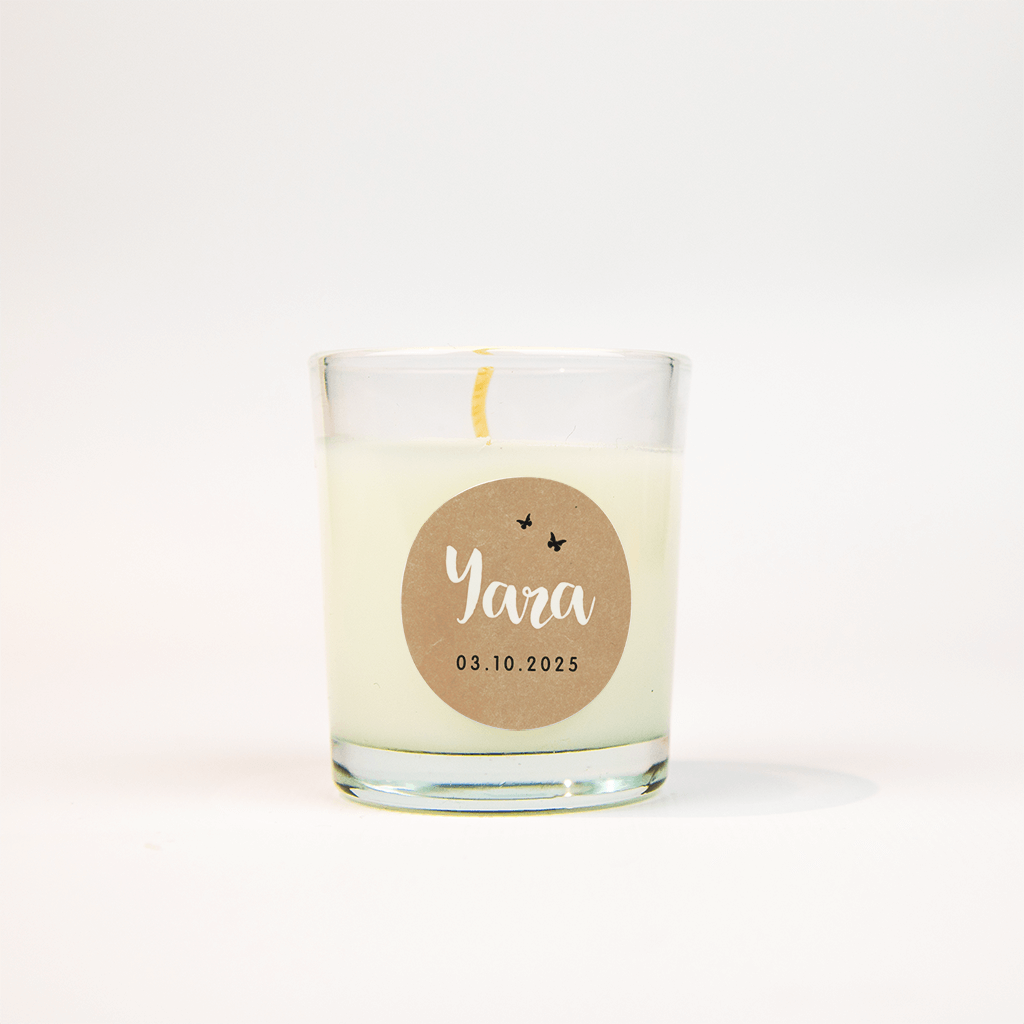 Deze sticker in kraftlook past perfect bij het geboortekaartje met de zusjes bij de schommel. De naam staat in speelse witte letters centraal, erboven twee kleine vlindertjes en eronder de geboortedatum. Met deze sticker maak je het geboortekaartje helemaal compleet!