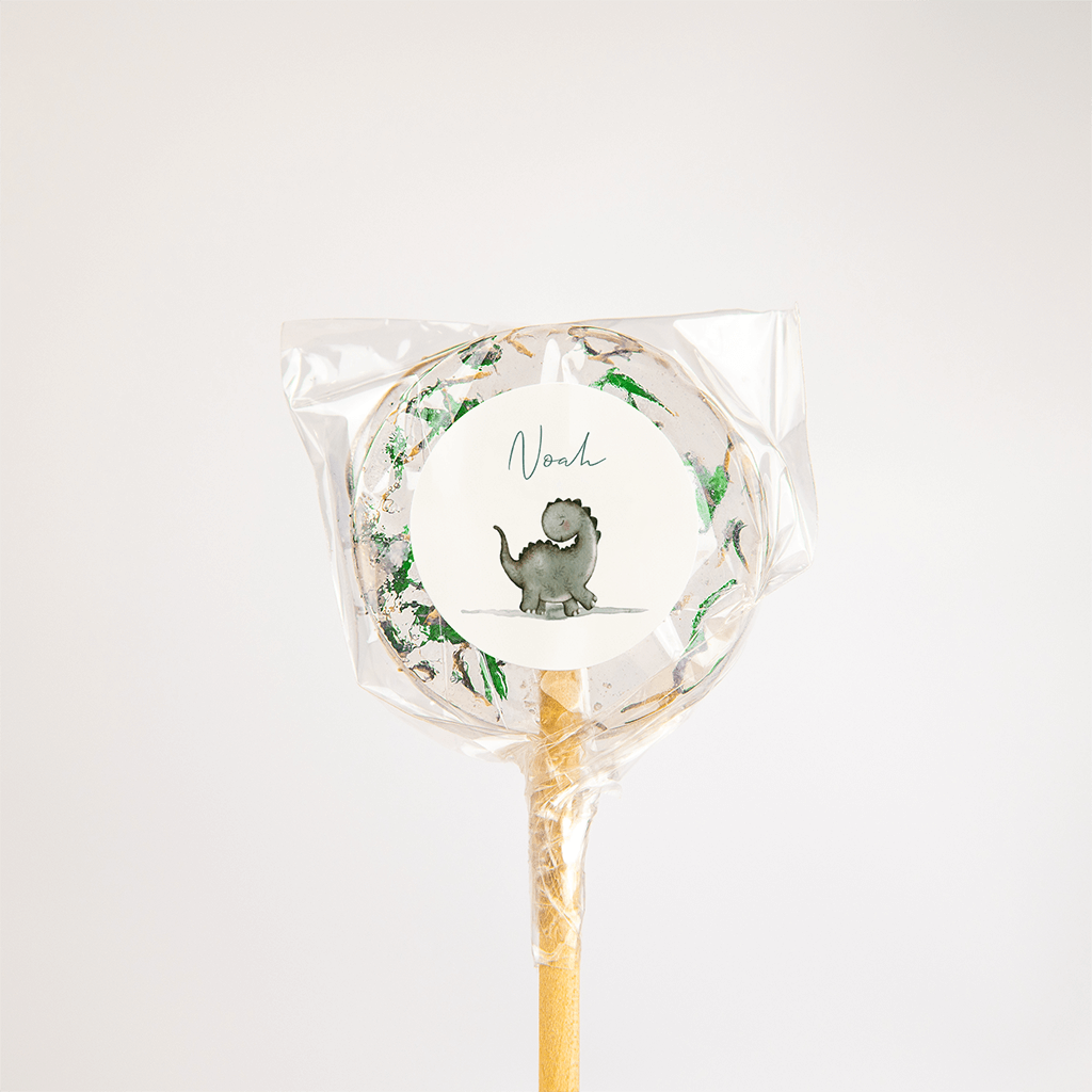 Op deze witte sticker staat een superlieve aquacolour groene dino. Deze sluitsticker maakt uw geboorteaankondiging een waar feestje op de deurmat!