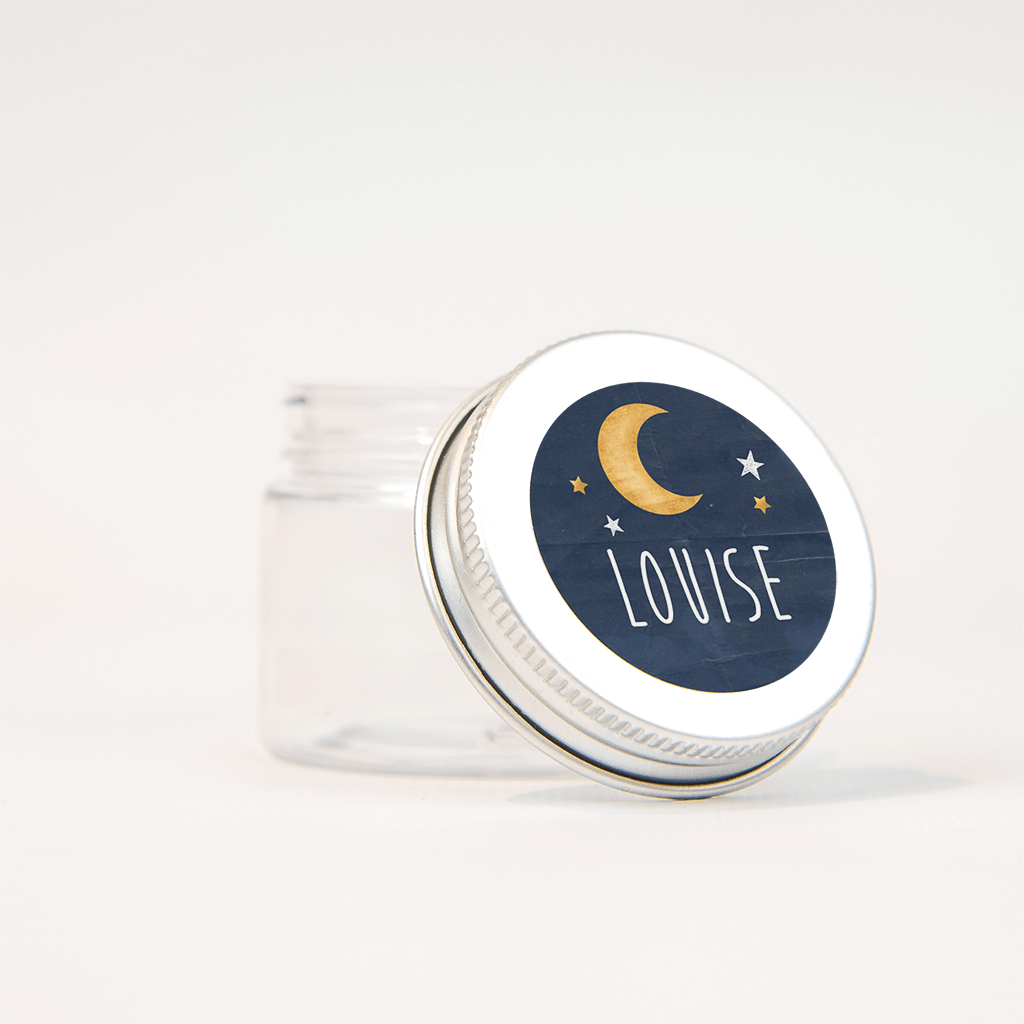 Een avontuurlijke sticker met de maan en sterren in goudkleur. De naam van jullie kindje staat ook op de sticker.
