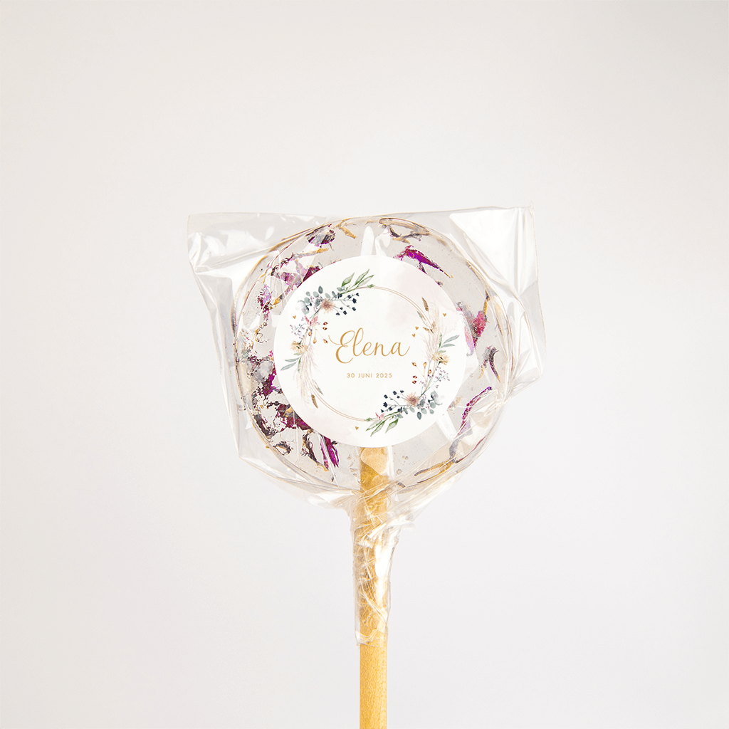 Schattige sticker met zacht roze kleuren en fleurige bloemenkrans