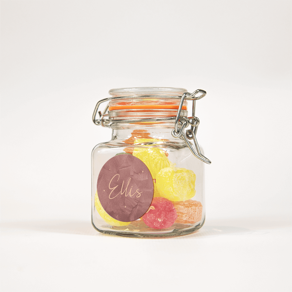 Deze sticker past perfect bij het geboortekaartje in hartvorm. Op de oudroze velvetlook achtergrond staat de naam in sierlijk lettertype centraal en de kleine hartjes maken het helemaal compleet!