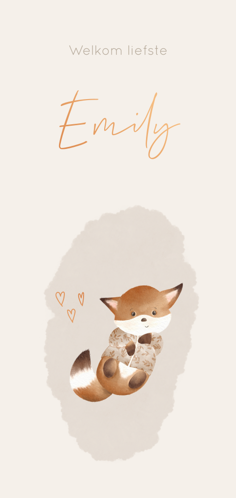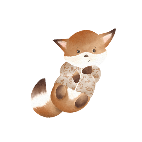 Lieve sticker met een vosje dat op haar rug ligt en een vestje aan heeft.