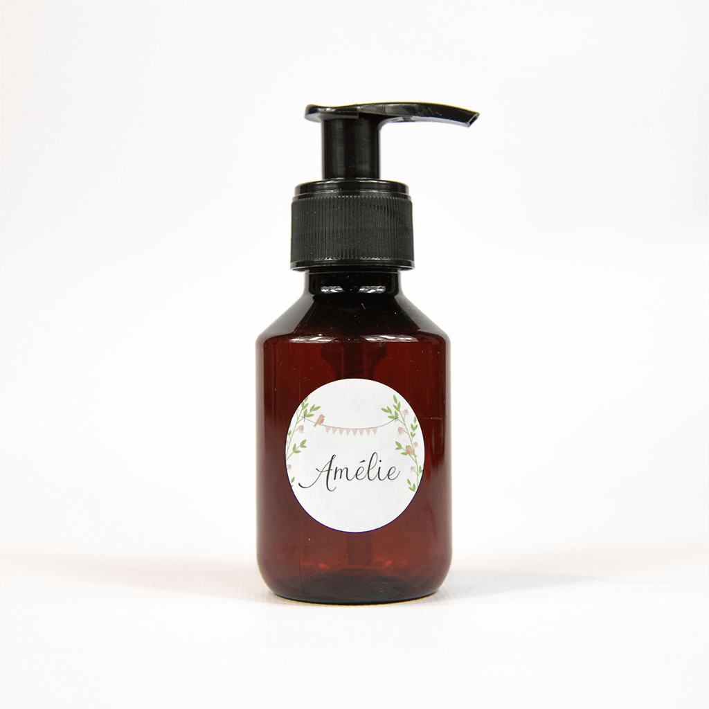 Wat een lieve sticker, die past perfect bij het geboortekaartje met het wiegje! Langs de rand zijn kleine bloementakjes getekend, daartussen een vrolijk vlaggenlijntje met een roodborstje erop. Eronder staat de naam in mooi geschreven typografie. Plak deze sticker op de envelopjes, gemakkelijk en nog een mooi effect ook!