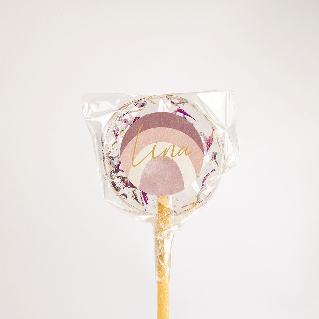Naamsticker met regenboog in roze tinten - per vel van 25 stickers