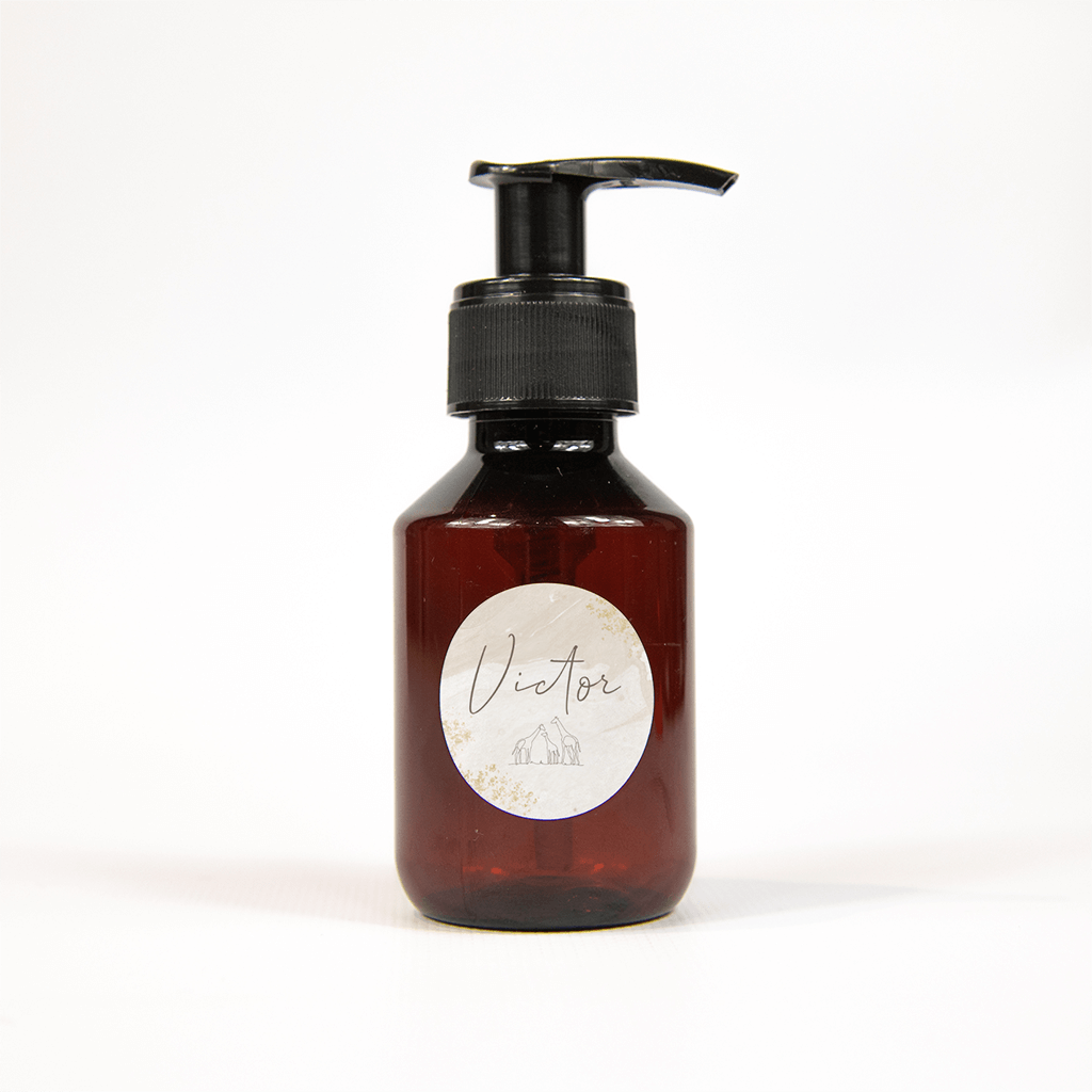 Deze sticker heeft dezelfde afbeelding als het geboortekaartje: op een beige waterverfachtergrond komt de naam in trendy letters mooi uit. Eronder een giraffenfamilie en de goudkleurige confetti langs de rand maakt het helemaal af.