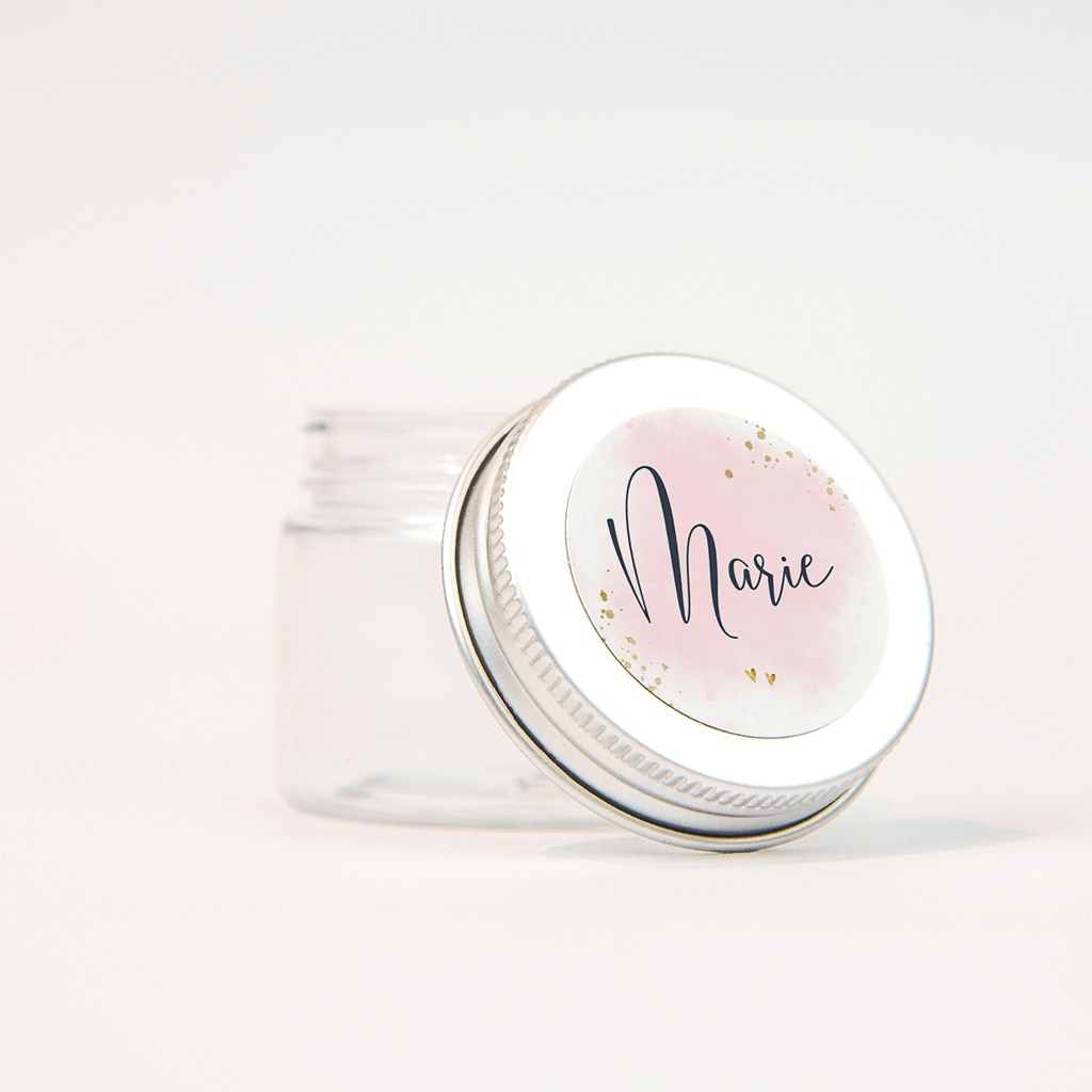 Bijpassende sticker bij het geboortekaartje met roze aquarelvlak. De naam staat in trendy handschrift in het midden; de goudkleurige spetters langs de rand zorgen voor een feestelijk accent!| Totaalprijs: 0 |
