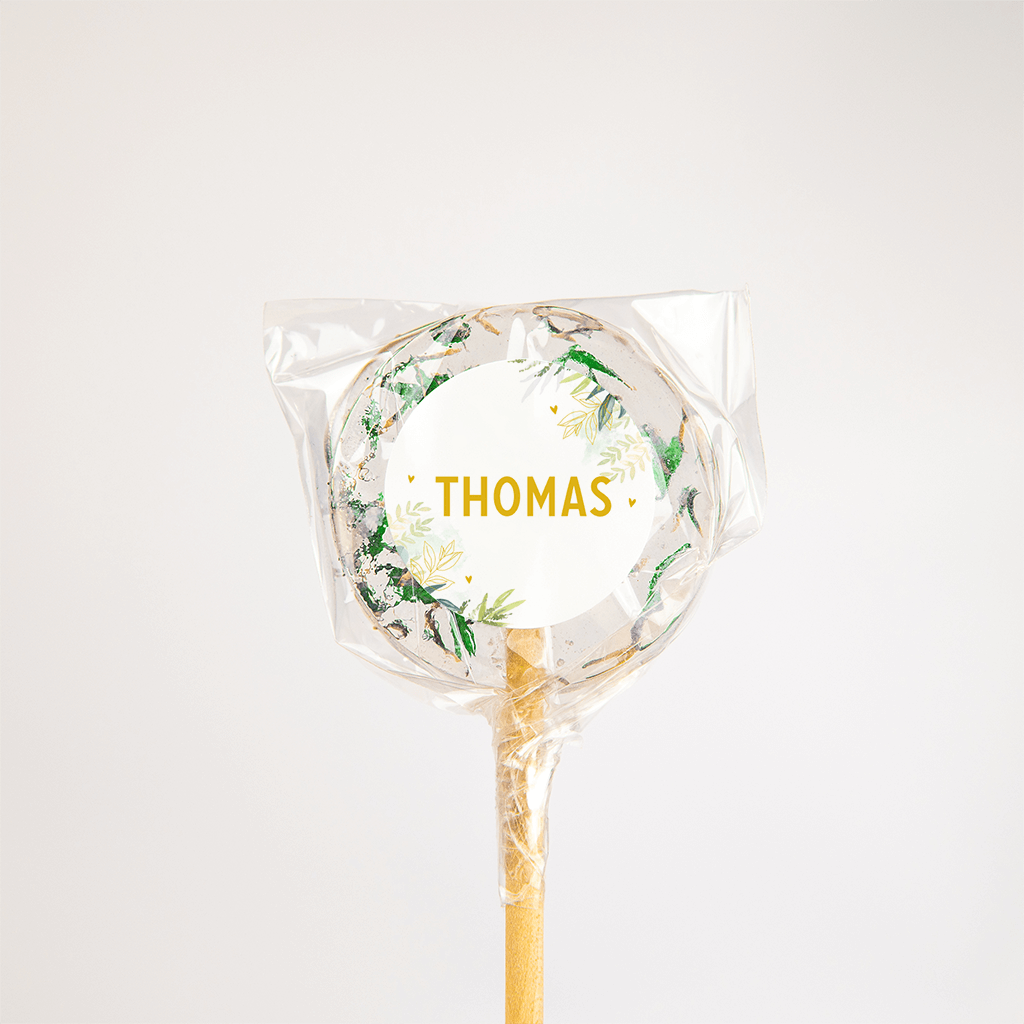 Bijpassende sticker bij het botanische geboortekaartje met goudfolie. De naam staat in trendy goudgele letters in het midden. Langs de rand staan geschilderde en getekende takjes in groen en geel met hier en daar een klein hartje.| Totaalprijs: 0 |
