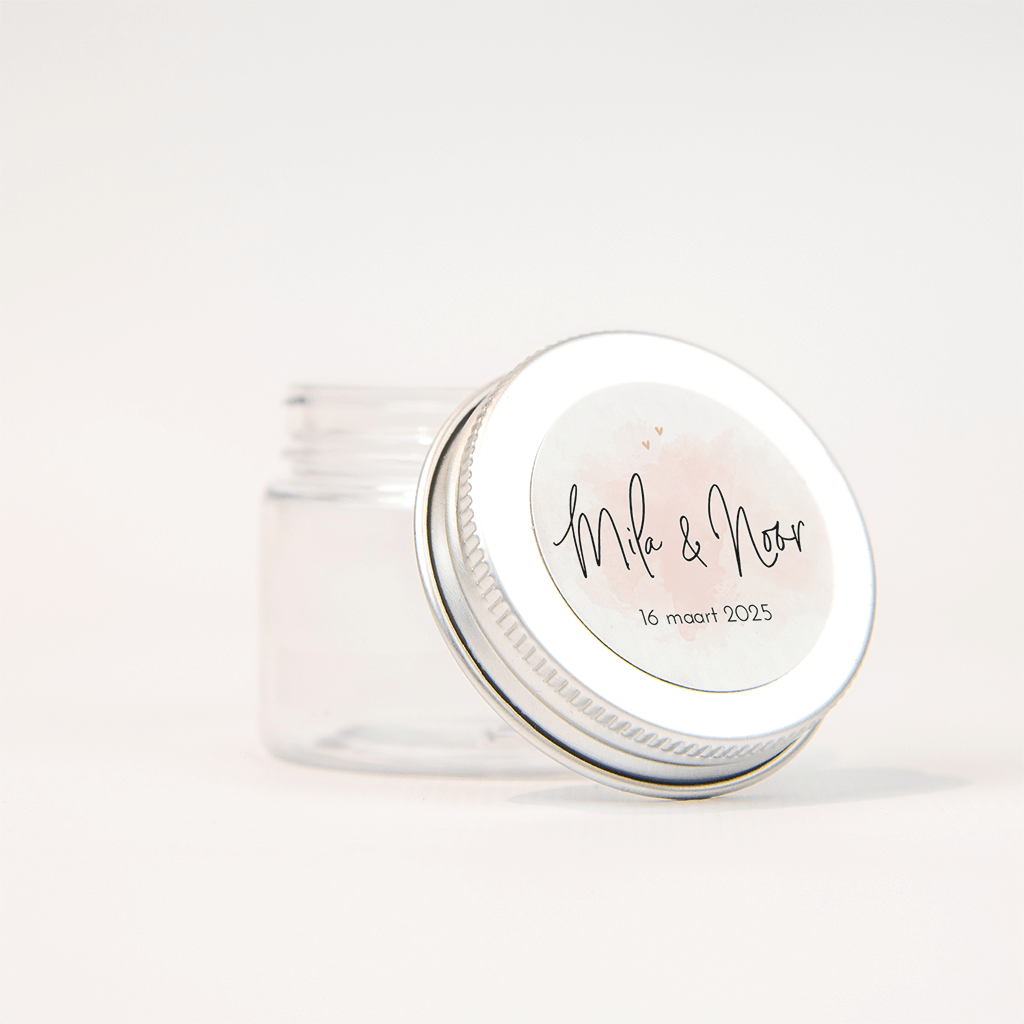 Bijpassende sticker bij het geboortekaartje voor een meisjes tweeling. Op de witte sticker staat een vlak van roze watercolour, hierop staan de namen in trendy letters in het midden en de geboortedatum eronder. De twee kleine hartjes boven de namen zijn echt lief!| Totaalprijs: 0 |