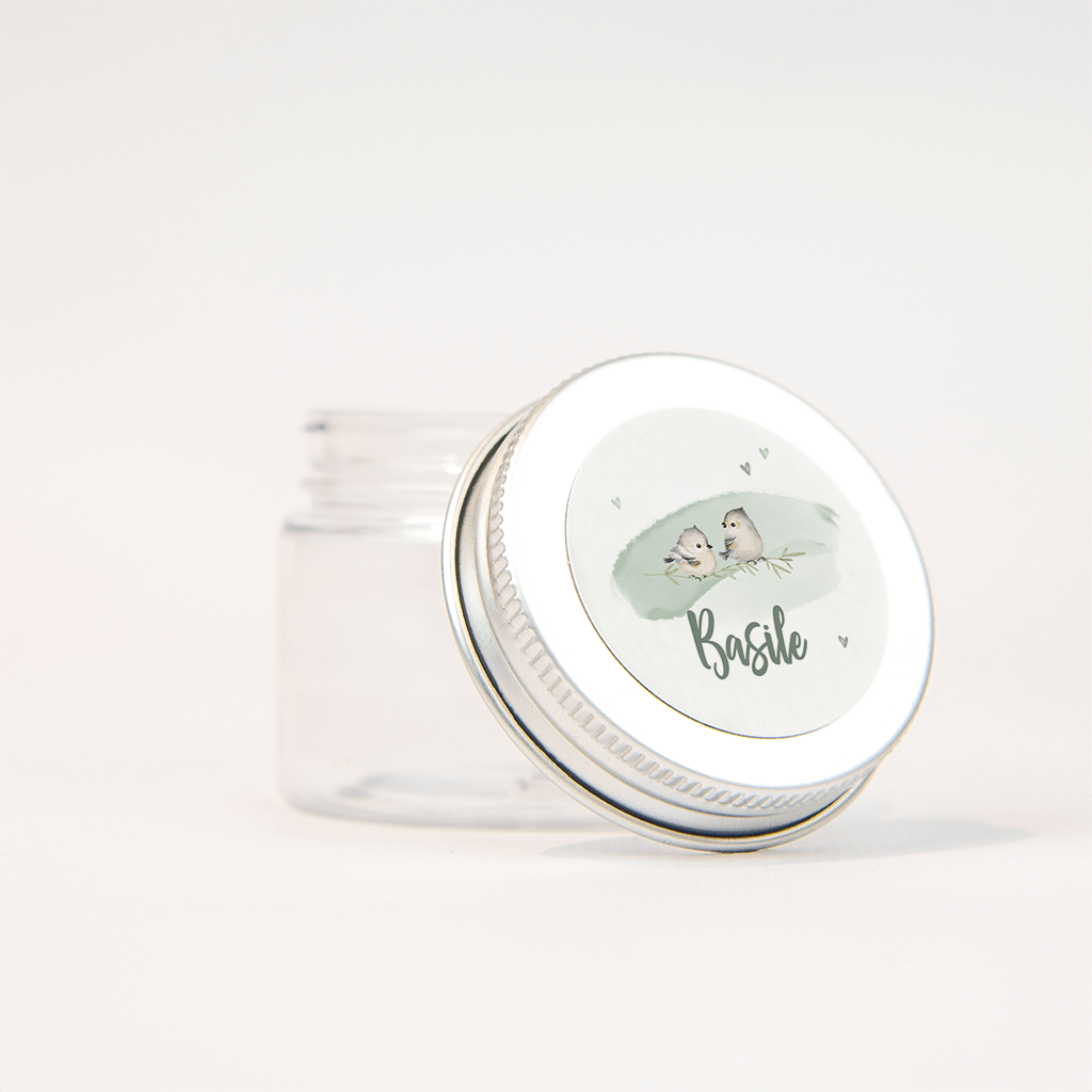 Bijpassende sticker bij het geboortekaartje met de twee vogeltjes. Op de mintgroene waterverf zitten twee vogeltjes naast elkaar, eronder de naam in trendy letters en de kleine hartjes maken het helemaal af.| Totaalprijs: 0 |