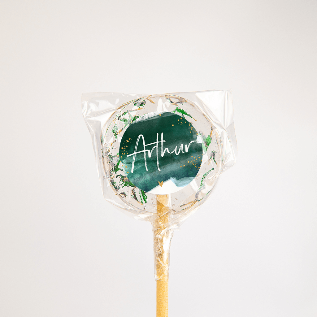 Trendy sticker met een donkergroene waterverfstreep op een witte achtergrond. De naam in hippe witte letters komt mooi naar voren op het groen en de goudkleurige spetters en het hartje maken het helemaal af!| Totaalprijs: 0 |