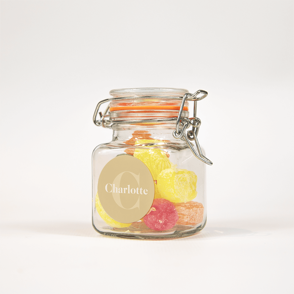 Sticker in de kleur woestijn geel met initiaal en naam van je kleintje.