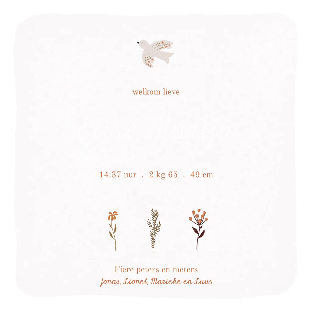 Tweeling geboortekaartje met kleine illustraties en goudfolie