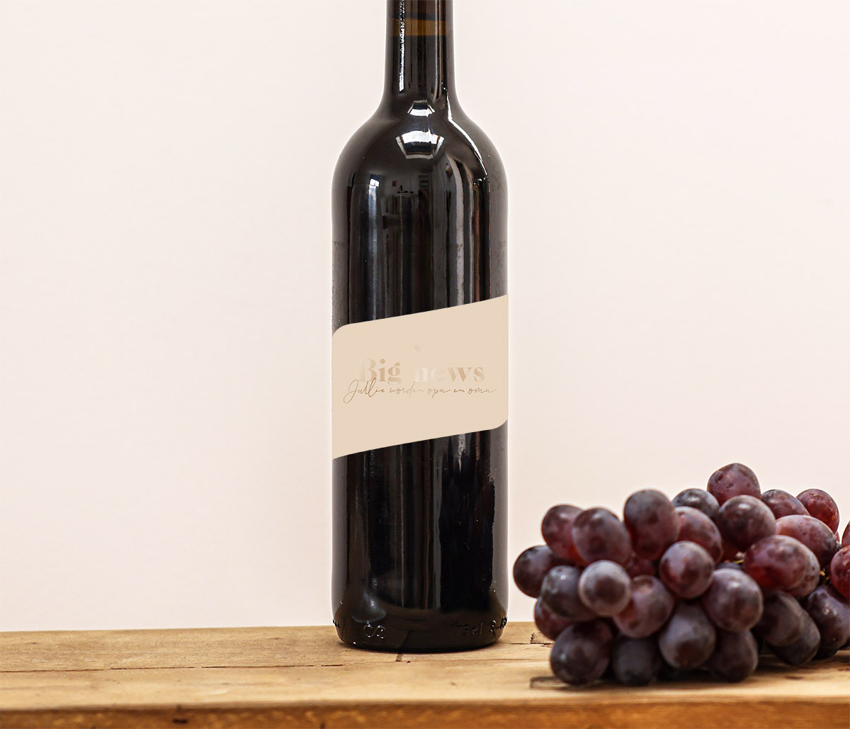 Wijnetiket zwangerschapsaankondiging 'Big news' met hoogglans