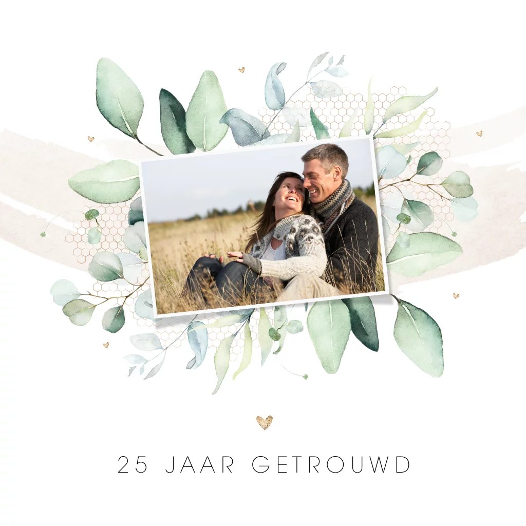 25 jaar getrouwd uitnodiging met eucalyptus takjes en foto
