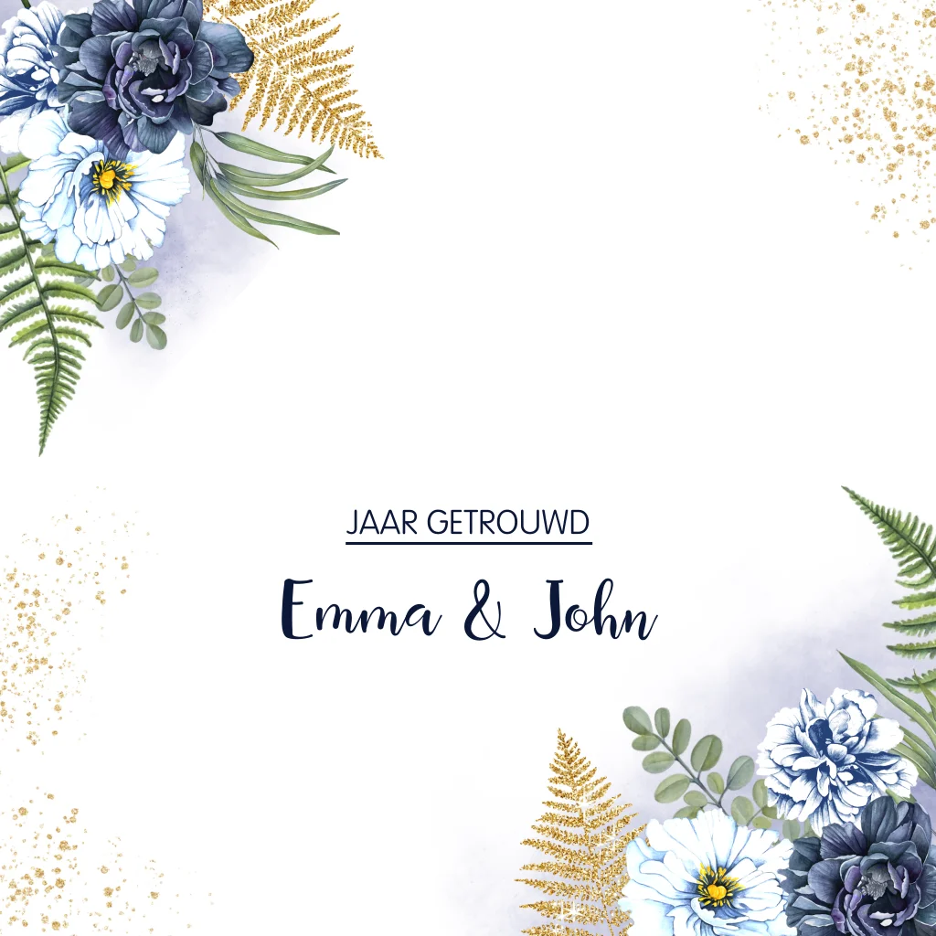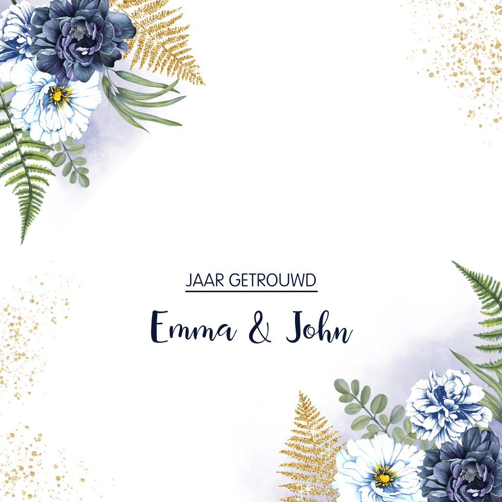 Goudfolie uitnodiging 50 jaar getrouwd - bloemen