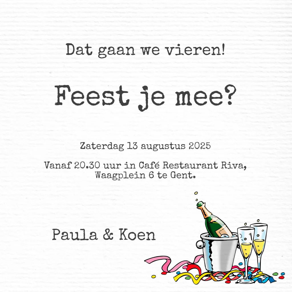Houden jullie wel van een beetje humor? Dan is deze kaart echt wat voor jullie! Een grappige huwelijksjubileumkaart met een cartoon van een man en vrouw op een bankje. Pas de teksten aan in de editor en nodig familie en vrienden uit voor een gezellig feestje!