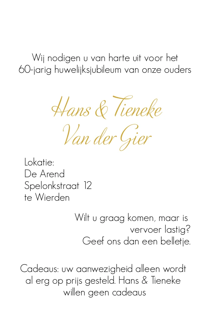 Uitnodiging 60 jaar huwelijk met foto en love in scrabble-letters