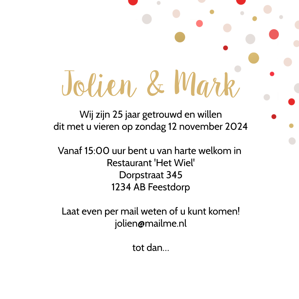Vrolijke uitnodiging 25 jarig jubileum met rood busje en confetti