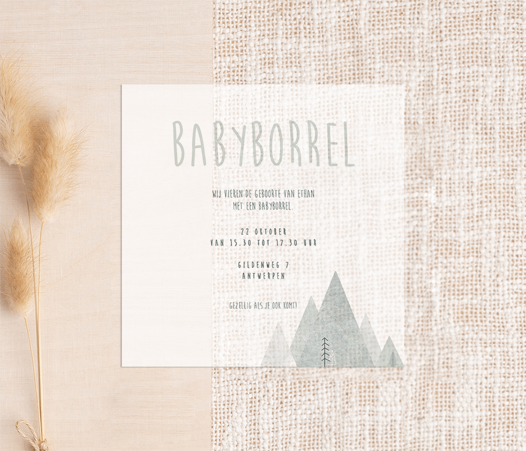 Babyborrelkaartje met bergen op kalkpapier