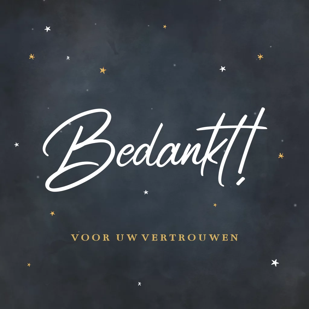 Zakelijke kerstkaart met "Bedankt" tekst en gouden sterretjes een krijtbord achtergrond.