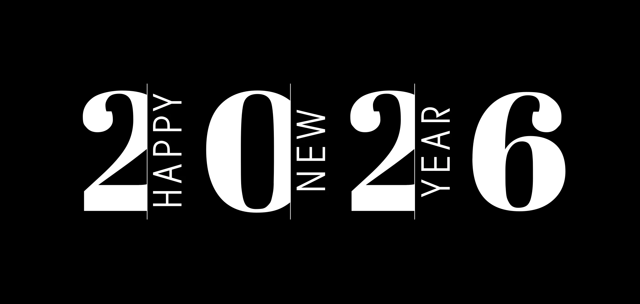 Een zakelijke kerstkaart waarop het jaartal van goudfolie is. Tussen de cijfers staat: 'Happy new year'. In de editor is het mogelijk om een logo toe te voegen.